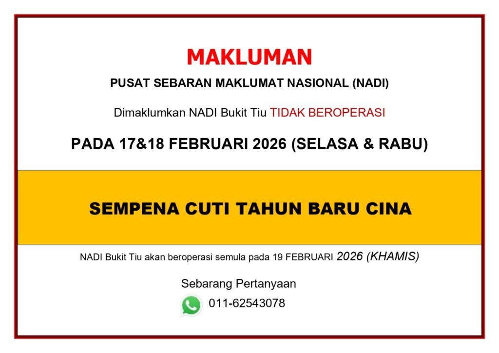NOTIS PENUTUPAN SEMENTARA NADI BUKIT TIU SEMPENA CUTI UMUM – TAHUN BARU CINA